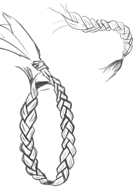 The character I’m currently drawing has pigtail braids, and they aren’t just hanging straight down, so I totally hit a wall trying to figure out how to draw them.