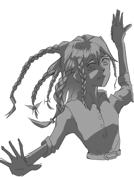Ultimately, if I can’t draw the braid with a consistent width in the draft stage, it’s not going to suddenly look good in the line art or coloring phase. I guess I need to improve my fundamental drawing skill of accurately grasping and outputting shapes.
