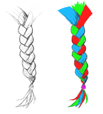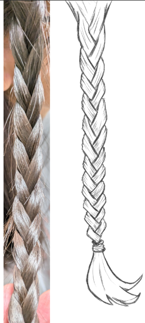 The tutorial said not to worry about the structure and just get used to drawing using the template, but I got too curious and decided to research how a braid is actually structured.