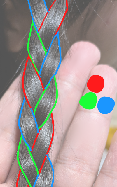 Anyway, I tried coloring the strands to check if it’s actually braided, just like you often see in braid tutorials.
